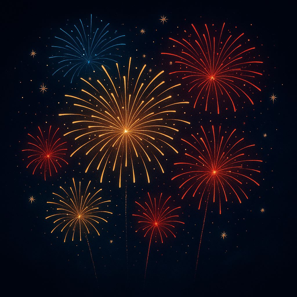Silvesterfeuerwerk über dem Nachthimmel, symbolisch für Neujahrsgrüße und Neuanfang 2026, passend zum Blogbeitrag von Michael Brumme und der Cluster Hilfe Brandenburg